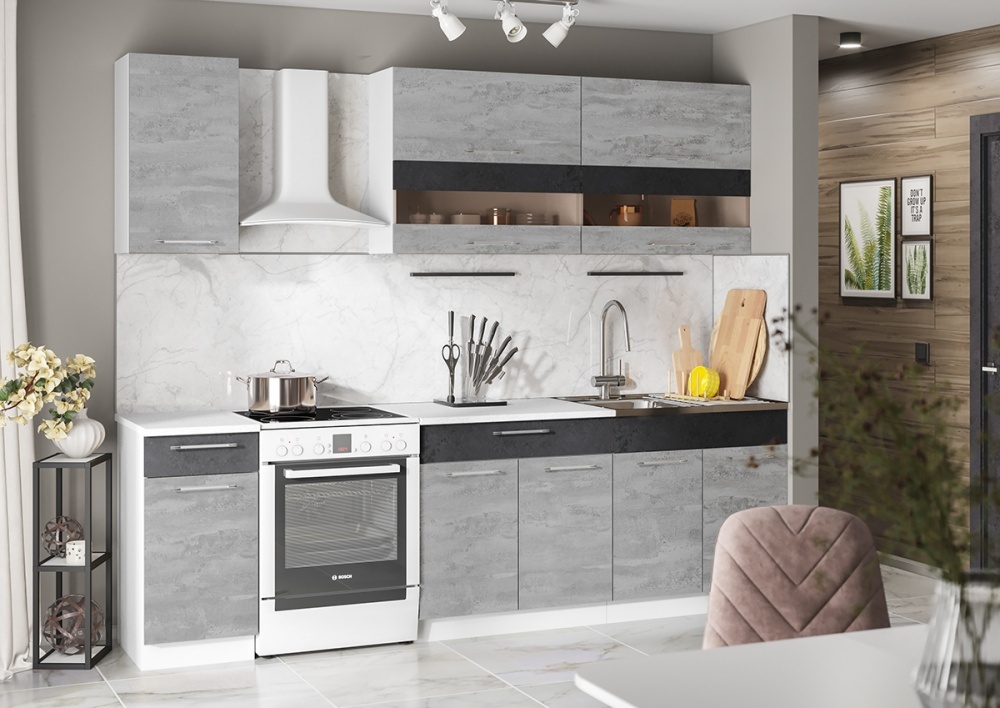 Для небольшой кухни отлично подойдет один комплект "Тренд", для более просторного помещения можно собрать сразу два идентичных комплекта.